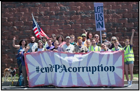 UUFP hosted a group of 25 activists on Monday evening, May 15th to aid in their March from Philadelphia to Harrisburg. The March was a “non-partisan state-wide volunteer effort to heal our wounded democracy.” Their goal was to present 3 bills to the Harrisburg legislature: • ban unlimited gifts • end gerrymandering • create automatic voter registration Desiree coordinated with the organizers of the March, which enabled the activists to have a hearty evening meal, a safe place to “crash” overnight and a good breakfast to send them on their way to Reading the next day.