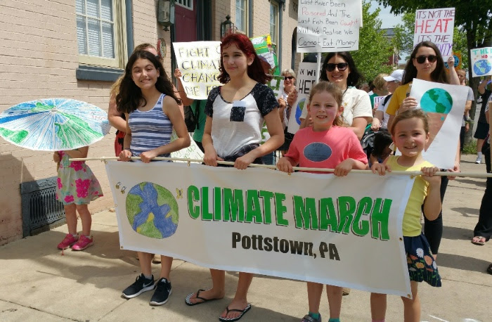 On April 29th, 2017, 17 members and friends of UUFP turned their values into action as they joined hundreds of concerned citizens at the Pottstown Climate March. Co-organized by UUFP members and UU Action Chair Desiree Peterman, The Pottstown Climate March invited participants to march to: “protect our right to clean air, water, land and healthy communities, promote preservation of our natural landscape and wildlife, ensure public funds and investments are directed towards sustainable technologies that transition our world to a cleaner, renewable energy economy that works for all, encourage investment in and focus on environmental education, and exercise our basic rights to protest and free speech”. Several elected officials from both parties were invited to attend the march, but only Representative Ryan Costello (R) attended. Costello did not march, but was able to spend time meeting and discussing concerns with marchers as they arrived. The march, one of about 300 in the U.S and internationally, began at the Hill School