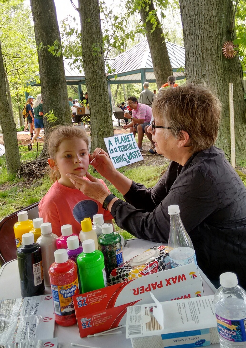 in Pottstown and continued down High Street ending at Riverfront Park for a climate rally. Marchers came prepared with creative, homemade signs and chants urging action to fight climate change and protect valuable resources. As the march progressed down High Street, several inspired locals joined the demonstration and many others expressed their support via cheers, honks, thumbs up, and high fives. In between chants, UUFP members and friends instilled hope among the crowd with moving songs such as “We Shall Overcome” and “Peace, Salaam, Shalom”. After the march, participants gathered at Riverfront Park for a rally with environmental speakers, clean energy providers, food vendors, music, and various children’s activities. UUFP hosted an informational table, and member Cyndi Buell-Hall offered free children’s face painting. Moving forward, UUFP members and friends will continue the fight to protect the Earth, working to ensure a healthy world for future generations.