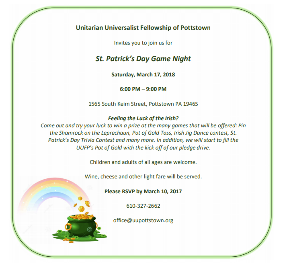 Home » News of the Fellowship » St. Patrick’s Day Game Night